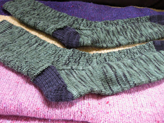 Hubby asked me to knit some socks for his dad's birthday a couple weeks ago. He came with me to Twisted and we picked out a skein of yarn with a LOT of yardage as his dad wear size 13 wide.